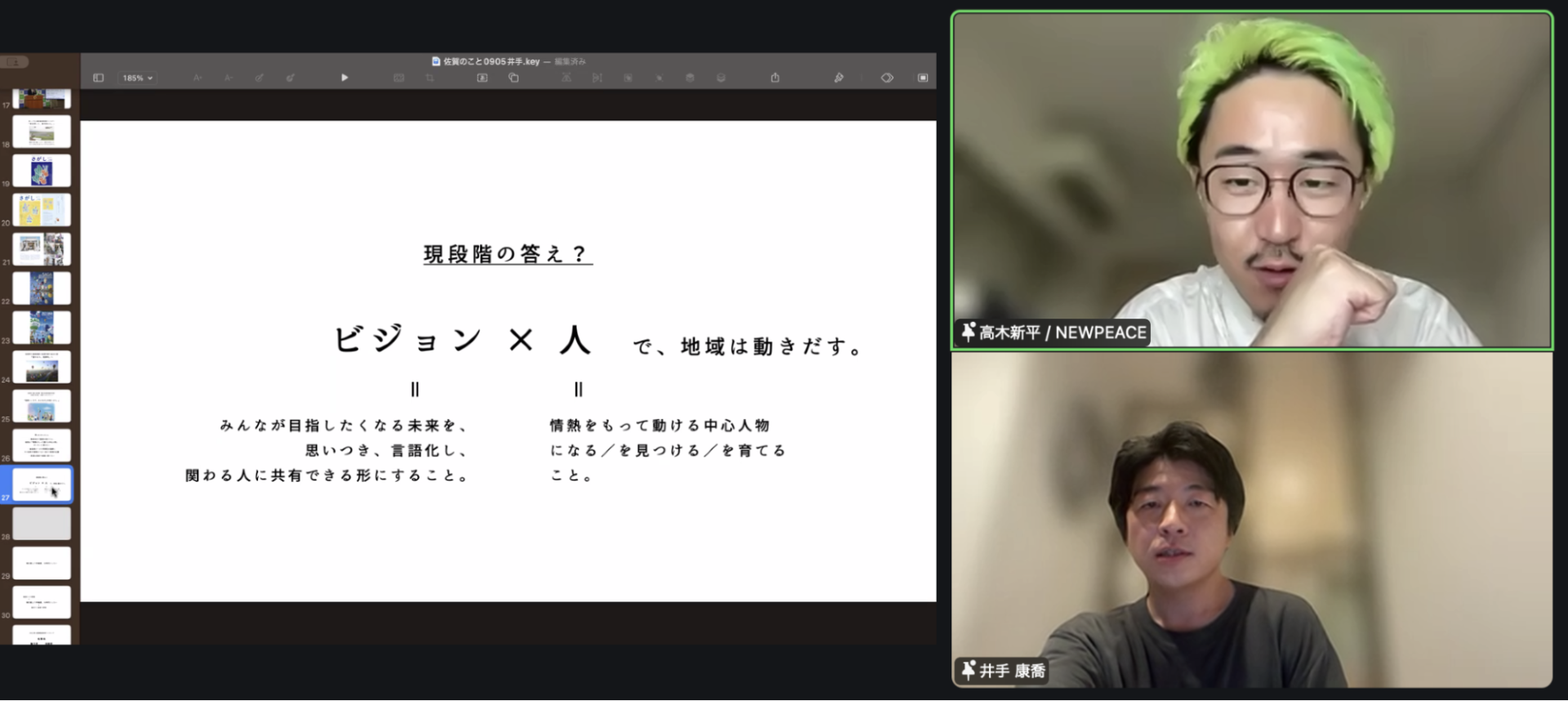 ゲストは、博報堂ケトル出身で佐賀市 情報発信強化アドバイザーを務める井手康喬さん。聞き手は、弊社代表で富山県クリエイティブディレクターの高木新平が務めました。行政に携わる方・クリエイター・地域企業にお勤めの方など、150名以上の方からお申し込みをいただき、「クリエイティブと行政はどう共創できるのか?」をテーマに、熱く議論が展開されました。