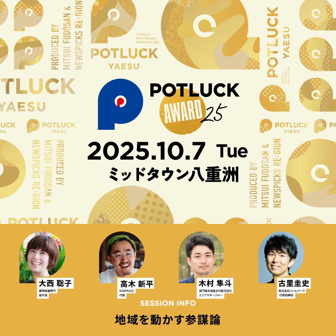 高木が10月7日開催のPotluck Awardへ登壇し、「地域を動かす参謀論」をテーマに語ります。